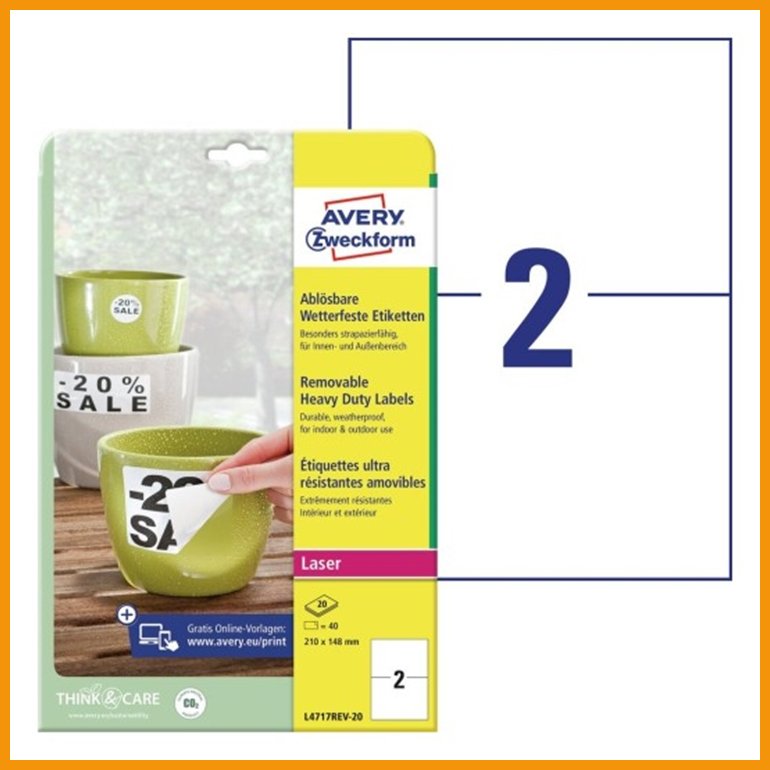 Tarra Säänkestävä irtoava Avery L4717REV-20 210x148mm /40 hinta 51,83€