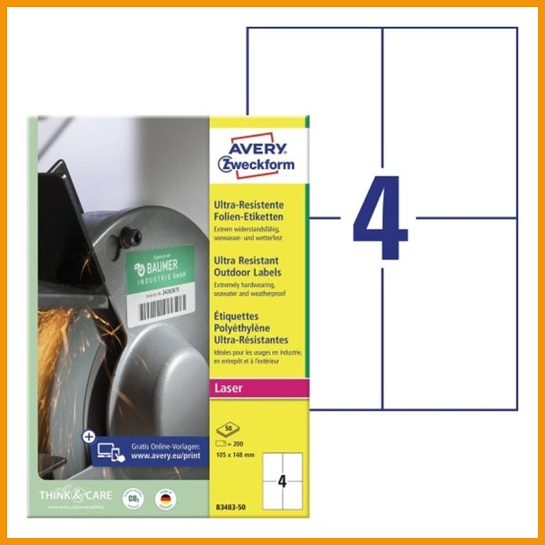 Averyn ultrakestävät tarrat soveltuvat kaikkein haastavimpiinkin olosuhteisiin. Mattapintaiset, venyvästä polyeteenistä valmistetut tarrat kestävät repeämisen ja hankauksen lisäksi erinomaisesti myös mm. öljyä, lämpöä, UV-säteilyä ja jopa merivettä. Edes monet pesuaineet, liuottimet tai muut kemikaalit eivät tee niille vahinkoa.Parhaan lopputuloksen saat tulostamalla tarrat lasertulostimella.