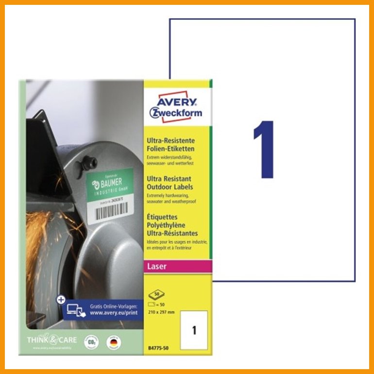 Averyn ultrakestävät tarrat soveltuvat kaikkein haastavimpiinkin olosuhteisiin. Mattapintaiset, venyvästä polyeteenistä valmistetut tarrat kestävät repeämisen ja hankauksen lisäksi erinomaisesti myös mm. öljyä, lämpöä, UV-säteilyä ja jopa merivettä. Edes monet pesuaineet, liuottimet tai muut kemikaalit eivät tee niille vahinkoa.Parhaan lopputuloksen saat tulostamalla tarrat lasertulostimella.