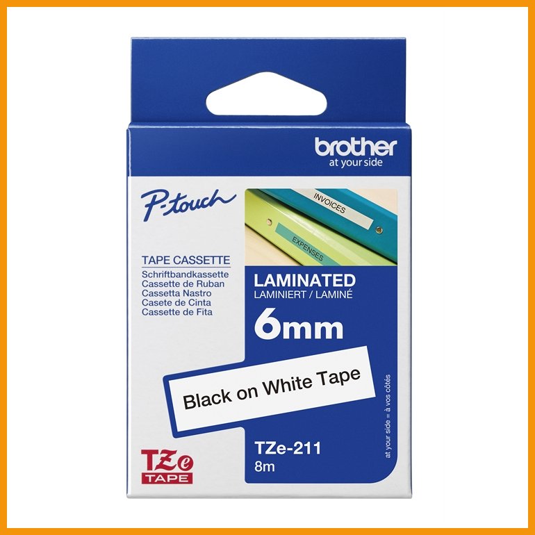 Brother TZe211 on laminoitu tarrakasetti kestävään ja selkeään merkintään. Merkit tulostetaan lämpösiirtomenetelmällä kahden PET-suojakalvon väliin, jolloin muodostuu vahva tarra. Niin hankausta, kosteutta, valoa, kemikaaleja kuin vaihtelevia lämpötilojakin erinomaisesti kestävät tarrat soveltuvat sekä sisä- että ulkokäyttöön. Kasetti sopii Brother P-Touch -tarrakirjoittimiin.