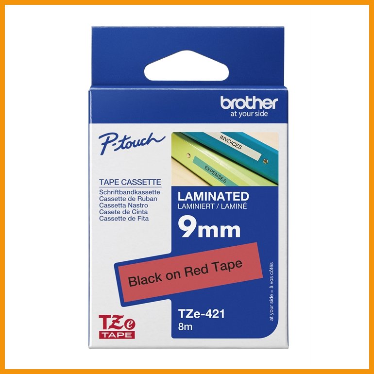 Brother TZe421 on laminoitu tarrakasetti kestävään ja selkeään merkintään. Merkit tulostetaan lämpösiirtomenetelmällä kahden PET-suojakalvon väliin, jolloin muodostuu vahva tarra. Niin hankausta, kosteutta, valoa, kemikaaleja kuin vaihtelevia lämpötilojakin erinomaisesti kestävät tarrat soveltuvat sekä sisä- että ulkokäyttöön. Kasetti sopii Brother P-Touch -tarrakirjoittimiin.