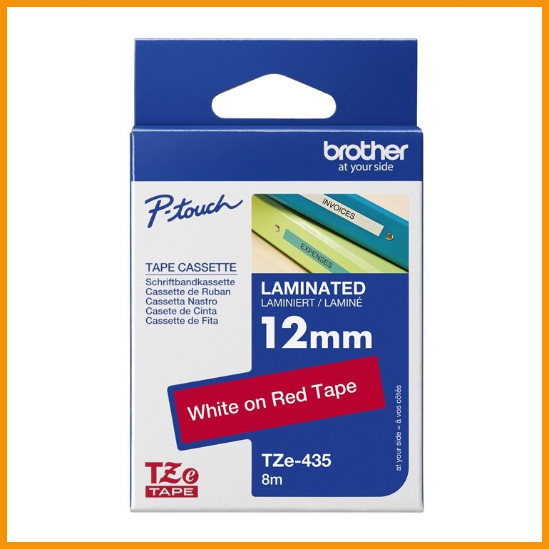 Brother TZe435 on laminoitu tarrakasetti kestävään ja selkeään merkintään. Merkit tulostetaan lämpösiirtomenetelmällä kahden PET-suojakalvon väliin, jolloin muodostuu vahva tarra. Niin hankausta, kosteutta, valoa, kemikaaleja kuin vaihtelevia lämpötilojakin erinomaisesti kestävät tarrat soveltuvat sekä sisä- että ulkokäyttöön. Kasetti sopii Brother P-Touch -tarrakirjoittimiin.