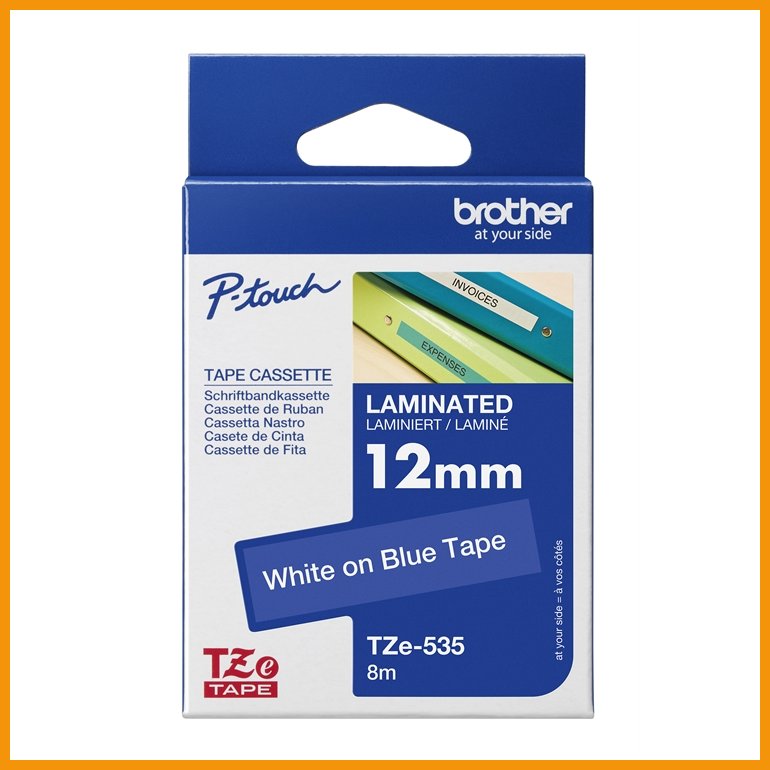 Brother TZe535 on laminoitu tarrakasetti kestävään ja selkeään merkintään. Merkit tulostetaan lämpösiirtomenetelmällä kahden PET-suojakalvon väliin, jolloin muodostuu vahva tarra. Niin hankausta, kosteutta, valoa, kemikaaleja kuin vaihtelevia lämpötilojakin erinomaisesti kestävät tarrat soveltuvat sekä sisä- että ulkokäyttöön. Kasetti sopii Brother P-Touch -tarrakirjoittimiin.