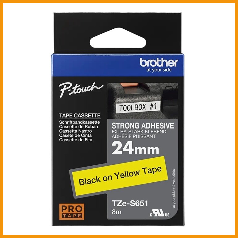 Brother TZeS651 on laminoitu tarrakasetti erikoisvahvalla liimalla. Merkit tulostetaan lämpösiirtomenetelmällä kahden PET-suojakalvon väliin, jolloin muodostuu vahva tarra. Niin hankausta, kosteutta, valoa, kemikaaleja kuin vaihtelevia lämpötilojakin erinomaisesti kestävät tarrat soveltuvat sekä sisä- että ulkokäyttöön. Kasetti sopii Brother P-Touch -tarrakirjoittimiin.