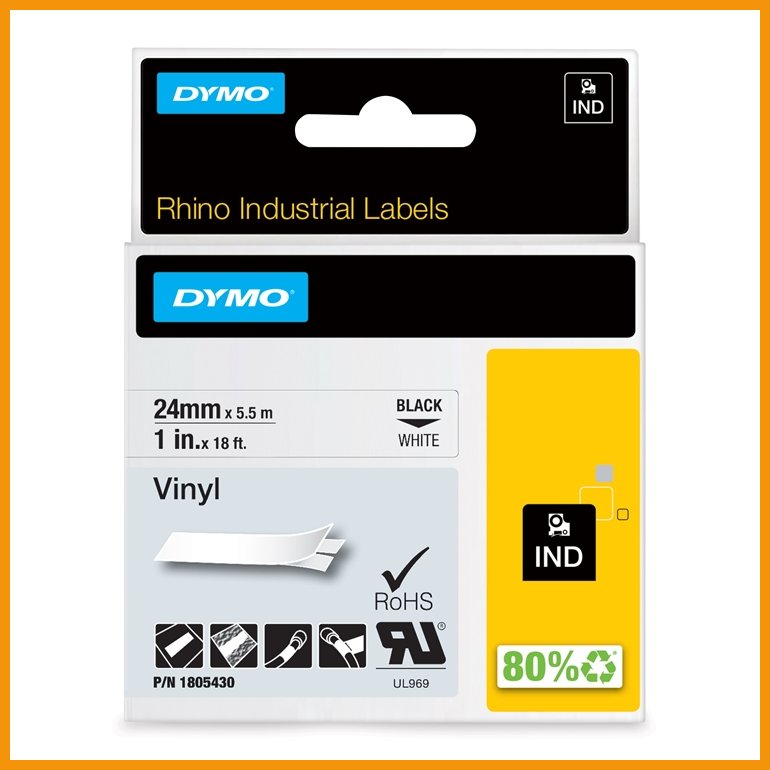24mm leveä Vinyyli-teippi. Musta teksti valkoisella pohjalla. Yleiseen merkintäkäyttöön tai vaativiin olosuhteisiin. Koska vinyylitarrat kestävät UV-säteilyn ohella kosteita tai kemikaaleja sisältäviä olosuhteita, ne ovat ihanteellinen ratkaisu tarroituksiin niin sisä- kuin ulkotiloissa. DYMO teollisuustarrat ovat kestäviä. Ne on testattu työmaaolosuhteissa, ja ne täyttävät UL-vaatimukset. Lämpösiirtotulostuksen ansiosta tarrat eivät tahraannu, leviä tai haalistu. Valikoimassa on laaja valikoima tarroja useina eri materiaaleina ja väreinä, jotka täyttävät OSHA-, ANSI- ja ISO-standardien vaatimukset. Merkintä on nopeaa ja tarkkaa DYMO -teollisuustarroilla ja työ onnistuu kerralla.