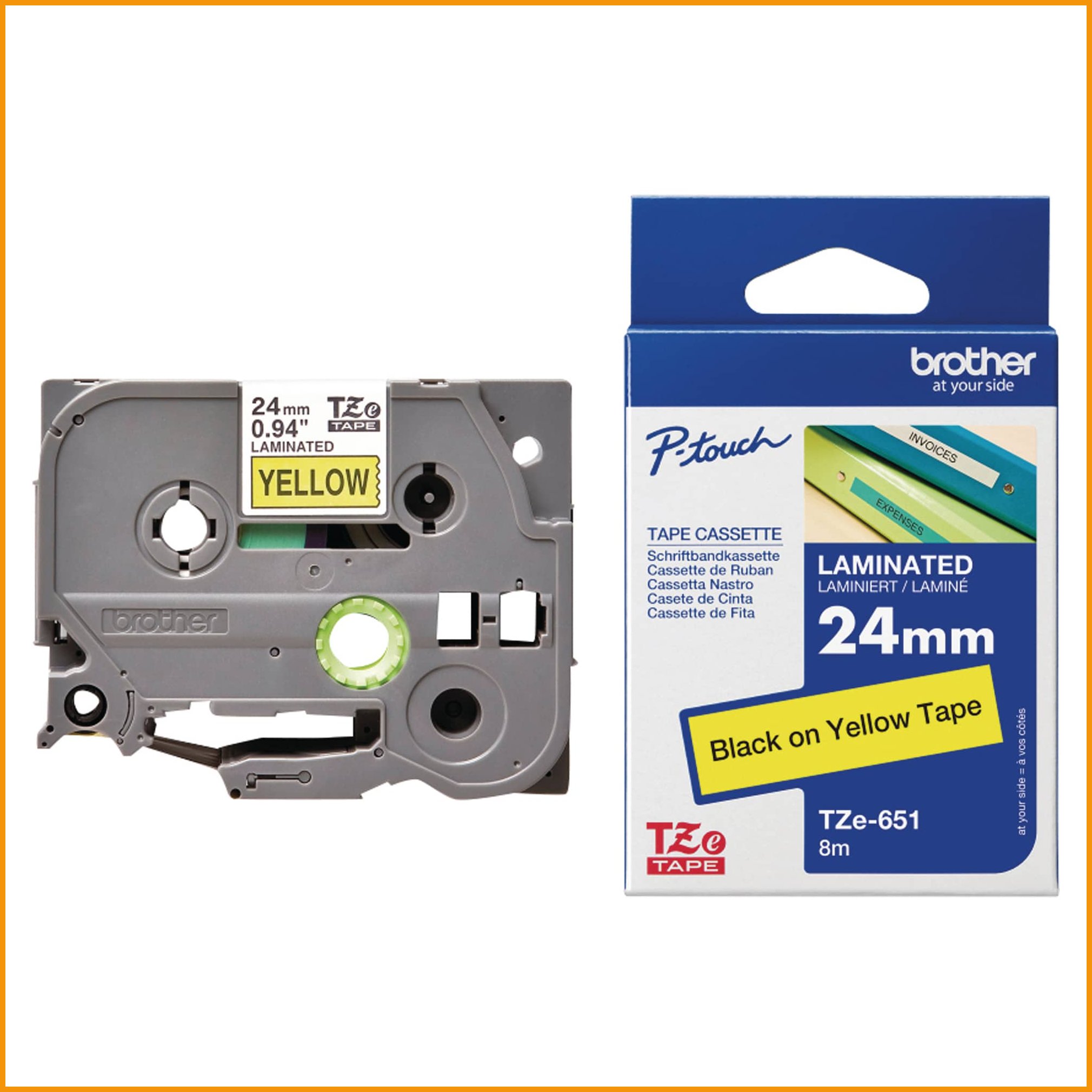 Korkealaatuinen tarranauha brother p-touch -tarratulostimiin. laminoidussa tarranauhassa on musta teksti keltaisella pohjalla. sekä sisä- että ulkokäyttöön sopivat tarrat kestävät auringonvaloa, pakkasta ja vettä. Tarranauhan mitat ovat: 24 mm x 8 m. Tarranauhan minimitilaus 1. Tukkupakkauksessa 20.Tarranauha Brother tze-651 24mm musta/keltainen on korkealaatuinen toimistotuote, jonka verkkokauppatilauksen toimitus perille kestää 1-2 päivää. Muistathan, että hinnaltaan yli 140 € verkkokauppatilaus toimitetaan aina ilmaiseksi! Meiltä voit tilata laskulla ja ilman rekisteröitymistä.