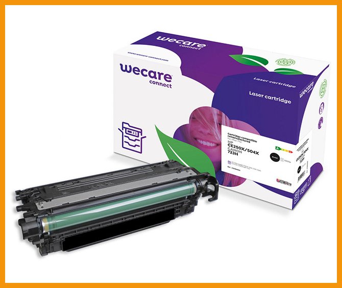 WeCare for HP CE250X on uudelleenvalmistettu tarvikelaservärikasetti. Kierrätetyistä materiaaleista valmistettu laservärikasetti vähentää uusien raaka-aineiden käyttöä ja auttaa siten pienentämään syntyvän jätteen määrää. Tuote onkin ansainnut todisteeksi ympäristöystävällisyydestään kotimaisen Joutsenmerkin. Tarvikekasetti on usein huomattavasti edullisempi vaihtoehto asiakirjojesi tulostamiseen.