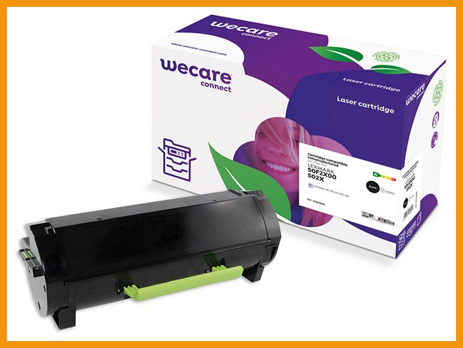 WeCare for Lexmark 50F0XA0 on uudelleenvalmistettu tarvikelaservärikasetti. Kierrätetyistä materiaaleista valmistettu laservärikasetti vähentää uusien raaka-aineiden käyttöä ja auttaa siten pienentämään syntyvän jätteen määrää. Tuote onkin ansainnut todisteeksi ympäristöystävällisyydestään kotimaisen Joutsenmerkin. Tarvikekasetti on usein huomattavasti edullisempi vaihtoehto asiakirjojesi tulostamiseen.
