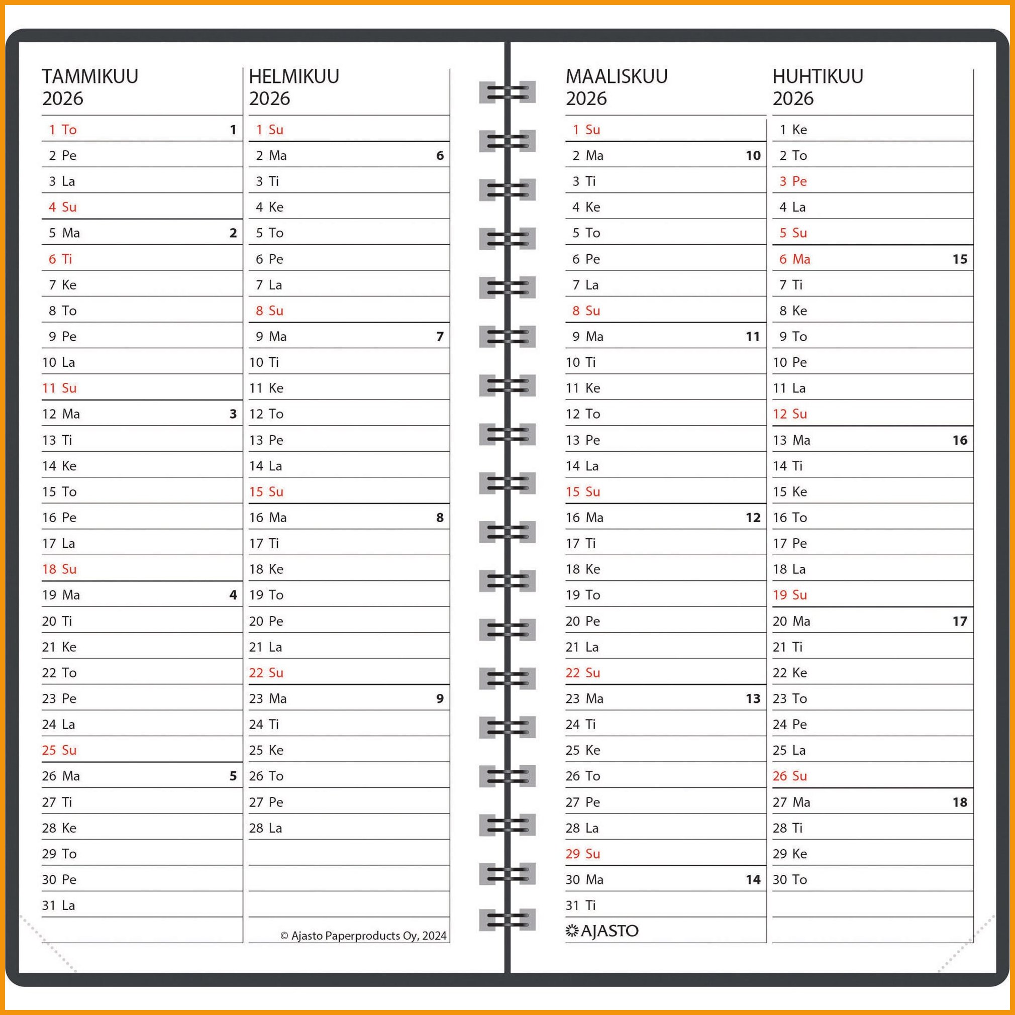 Hinta 11,15€ / kplAjasto Agenda 2026 taskukalenteri on todellinen klassikko. Kalenterissa on tyylikkäät ruusukultaiset keinonahkakannet. Se kulkee helposti mukana, on kooltaan juuri sopiva ja toimii erinomaisesti päivittäisessä käytössä. Keskikokoisen Agenda-taskukalenterin aukeamalla on selkeälukuinen ...VarastossaTarkastele- +