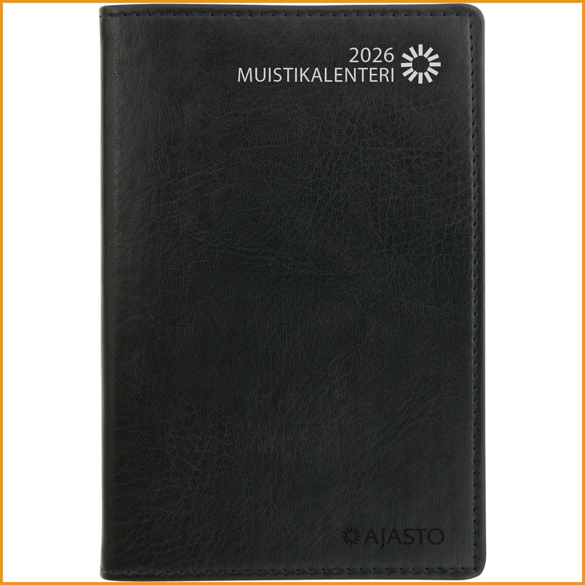 Taskukalenteri 2026 Ajasto muistikalenteri musta 82 x 128mm tuotetiedot