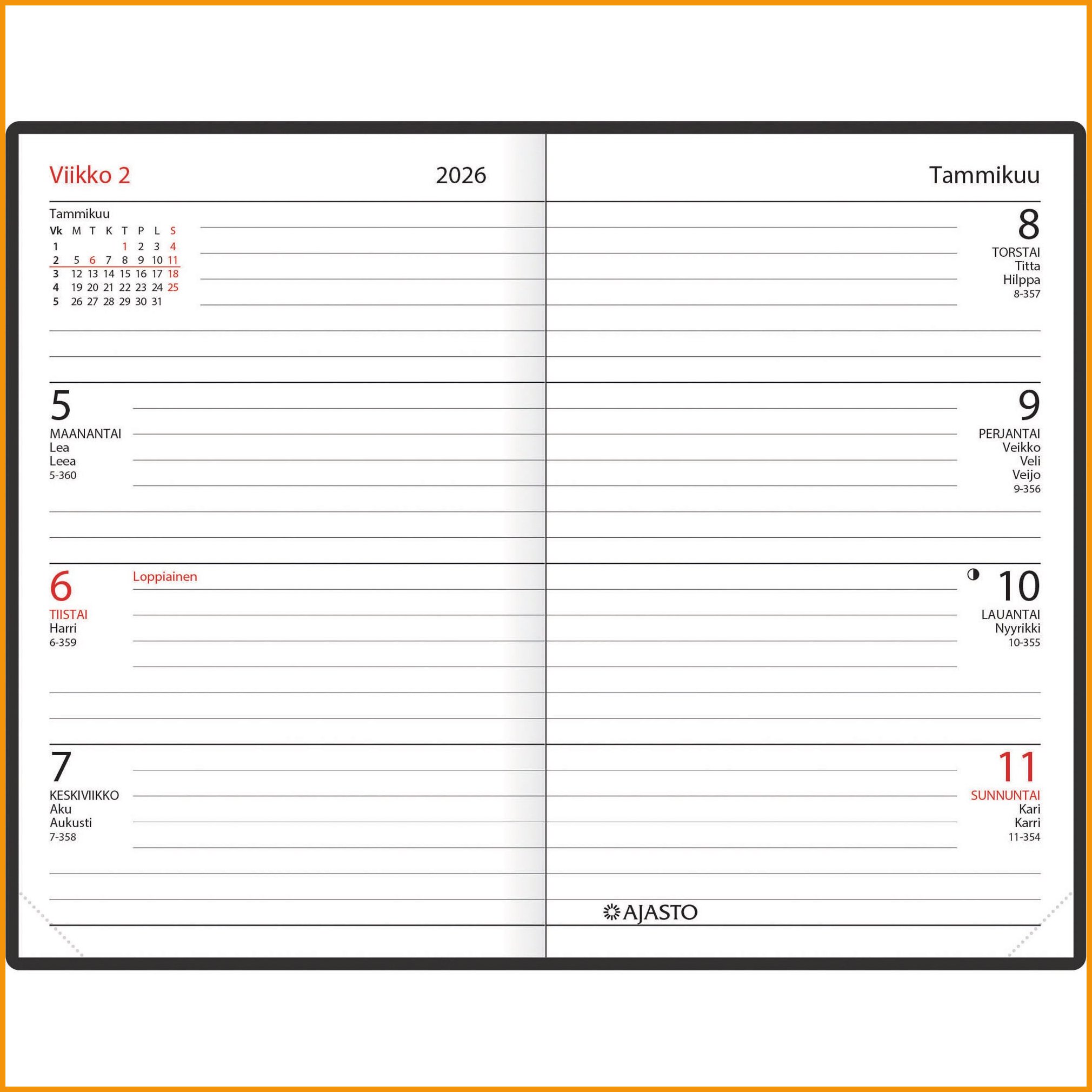 Hinta 11,15€ / kplAjasto Agenda 2026 taskukalenteri on todellinen klassikko. Kalenterissa on tyylikkäät mustat keinonahkakannet. Se kulkee helposti mukana, on kooltaan juuri sopiva ja toimii erinomaisesti päivittäisessä käytössä. Keskikokoisen Agenda-taskukalenterin aukeamalla on selkeälukuinen viikkonäkymä.VarastossaTarkastele- +