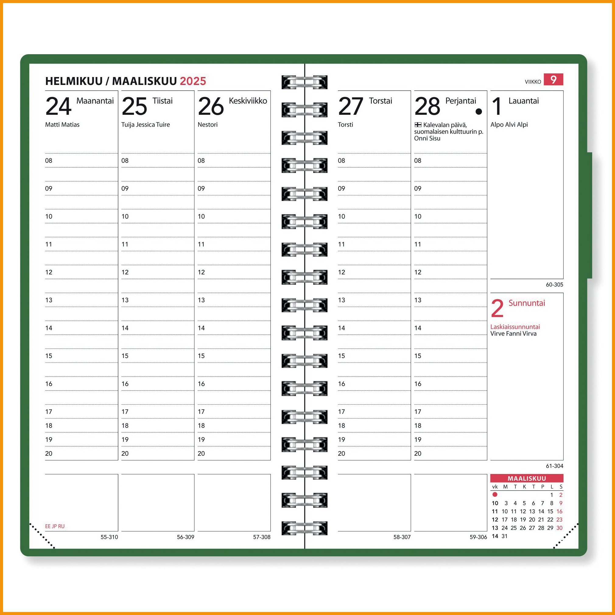 Tämä taskukalenteri on luokiteltu ympäristöystävälliseksi. Katso lisäinfoa ekologisuudesta ja tutustu muihin ekotuotteisiin Ekologiset toimistotarvikkeet -sivulla.