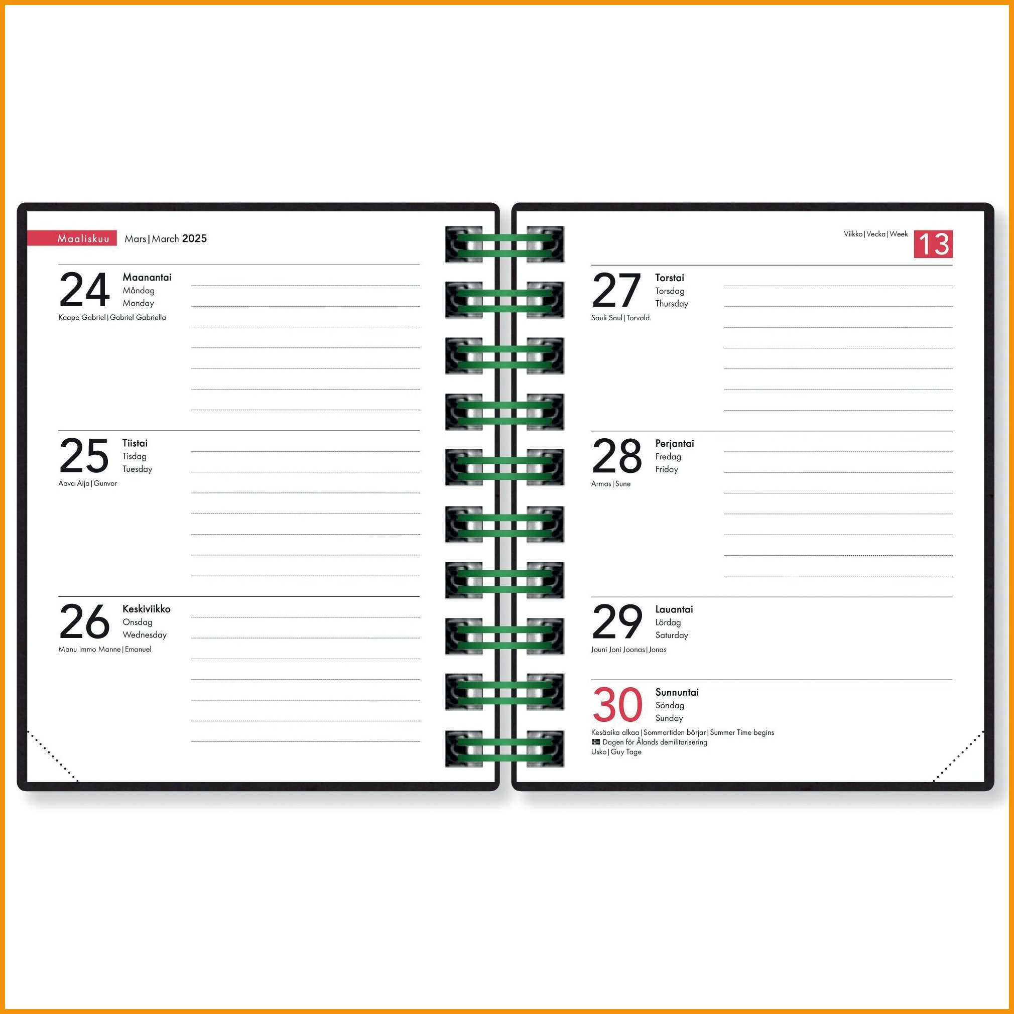 Tämä taskukalenteri on luokiteltu ympäristöystävälliseksi. Katso lisäinfoa ekologisuudesta ja tutustu muihin ekotuotteisiin Ekologiset toimistotarvikkeet -sivulla.