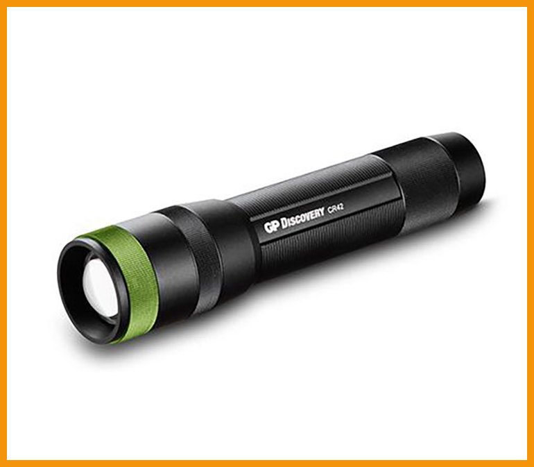GP Discovery CR42 on vaativaan ulkokäyttöön kehitetty ladattava taskulamppu. Tehokkaassa lampussa on kestävä alumiinirunko ja korkeatasoinen IPX7-suojaus, joka pitää valaisimen toimintakuntoisena pahimmassakin myräkässä. Kirkkaustasoja on viisi (matala, normaali, korkea, eko ja SOS).Valovirta: 1000 lumenia