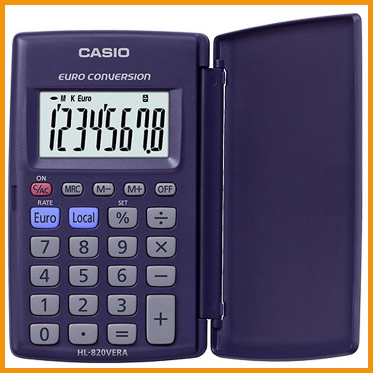 Casio HL-820VERA on lompakkomallinen taskulaskin kovamuovisella, taakse kääntyvällä kannella ja isolla 8 numeron näytöllä. Peruslaskutoimitusten lisäksi laskimessa on euromuuntonäppäin, muisti (M+, M-, MRC) ja 7-toiminen %-näppäin (mm. katelaskenta).62,5 x 104 x 10 mm, paino: 45 g