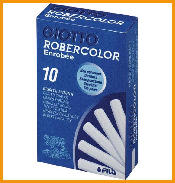 Aidosta kalkista valmistetut Giotto Robercolor -taululiidut ovat pölyämättömiä ja pinnoitettu niin, etteivät ne tahraa käsiä. Pyöreät liidut jättävät selkeän ja vahvan piirtojäljen raapimattataulun pintaa.Väri: valkoinen
