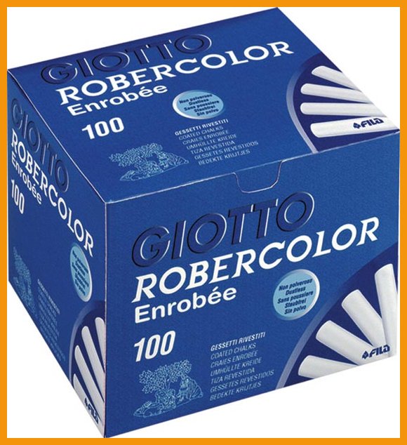 Aidosta kalkista valmistetut Giotto Robercolor -taululiidut ovat pölyämättömiä ja pinnoitettu niin, etteivät ne tahraa käsiä. Pyöreät liidut jättävät selkeän ja vahvan piirtojäljen raapimattataulun pintaa.Väri: valkoinen