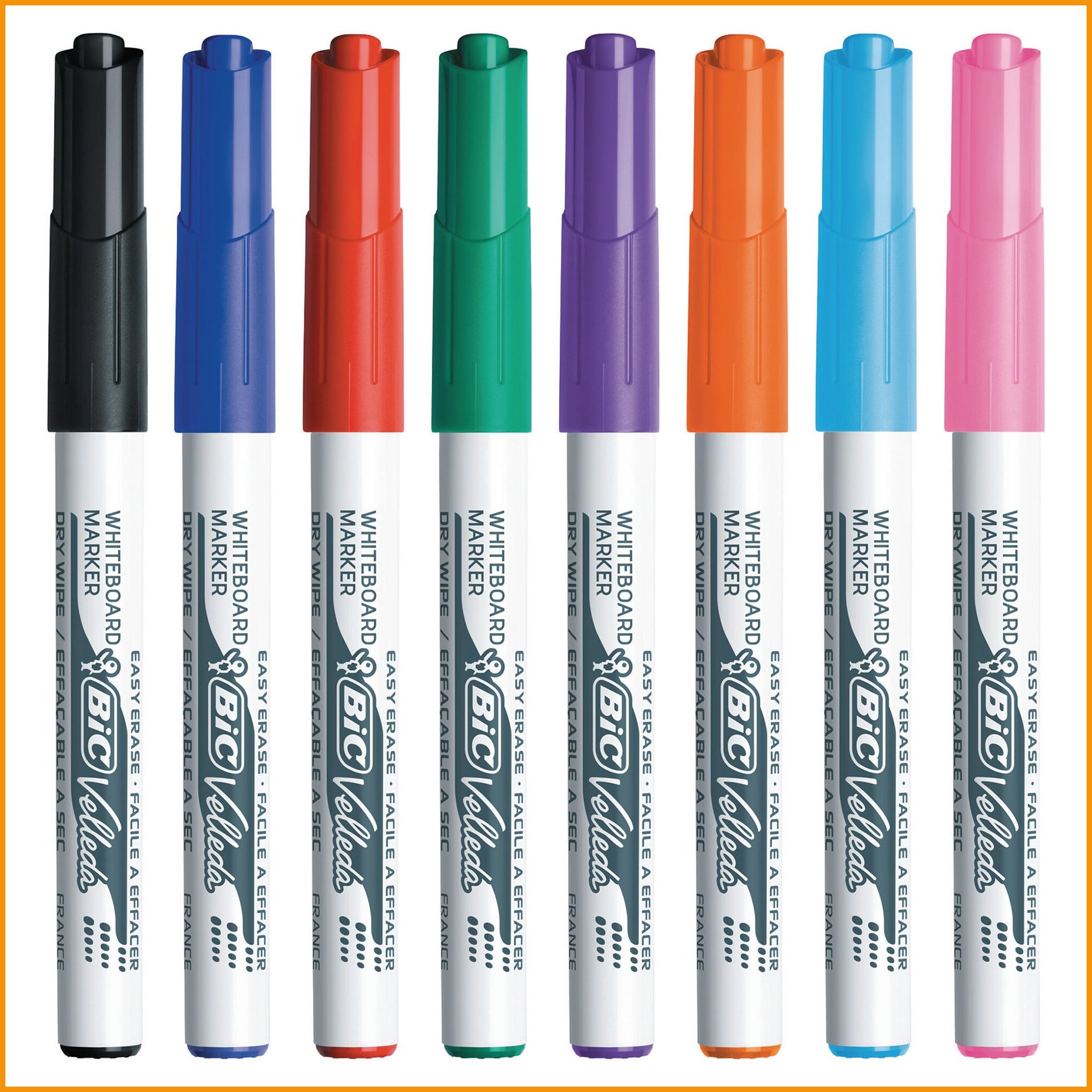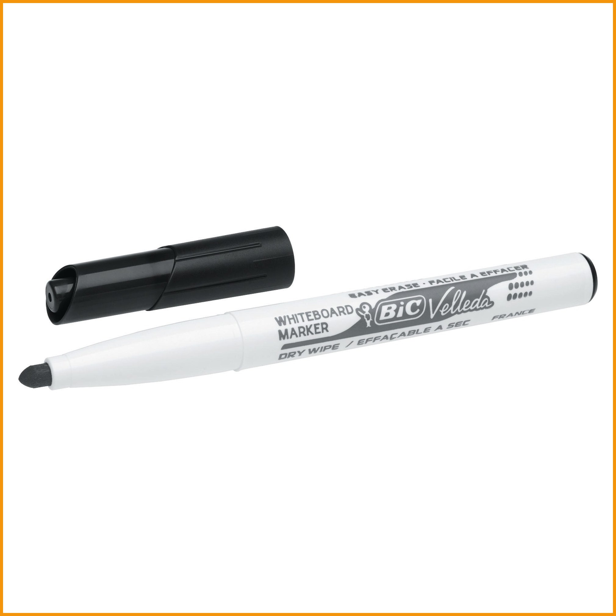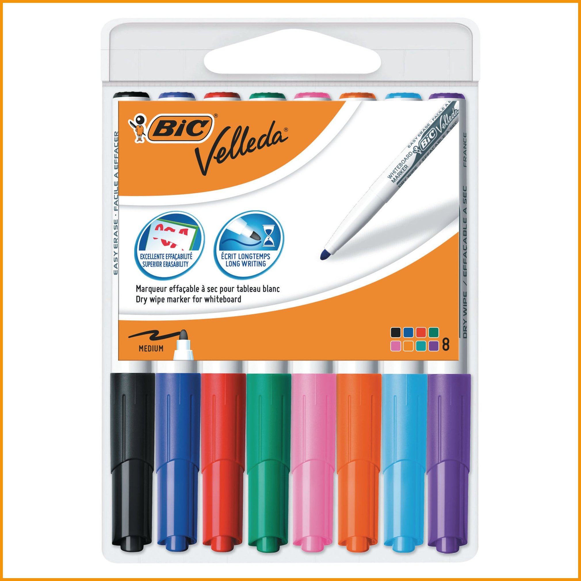 Bic velleda 1741 on taskukokoinen valkotaulukynä, jonka erikoismuste pyyhkiytyy hyvin jopa parin viikon kuluttua kirjoittamisesta. muste pyyhkiytyy pois kuivalla liinalla lähes mistä tahansa ei-huokoisesta pinnasta. nopeasti kuivuva muste ei sotke. värilajitelmassa on 8 väriä: sininen, musta, punainen, keltainen, lila, ruskea, oranssi ja vihreä. pyöreä kärki, viivan leveys 1,4 mm. myyntierä: 1 pkt / 72 pkt.Taulutussit toimitetaan 8 kappaleen erissä.