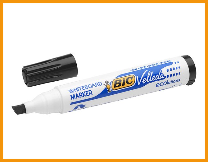 Hinta 14,70€ / 8 kplBic velleda 1741 on taskukokoinen valkotaulukynä, jonka erikoismuste pyyhkiytyy hyvin jopa parin viikon kuluttua kirjoittamisesta. muste pyyhkiytyy pois kuivalla liinalla lähes mistä tahansa ei-huokoisesta pinnasta. nopeasti kuivuva muste ei sotke. värilajitelmassa on 8 väriä: sininen, musta, ...