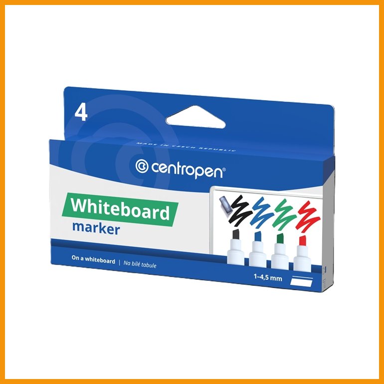 Centropen 8569 -valkotaulukynän nopeasti kuivuva ja miedosti tuoksuva alkoholipohjainen muste on vesiliukoista ja valonkestävää. Muste on helppo pyyhkiä valkotaululta kuivalla taulupyyhkimellä tai liinalla. Kynällä voi kirjoittaa myös lehtiötauluille. Säilytä kynä vaakatasossa.Kynä on valmistettu 97-prosenttisesti kierrätysmuovista.