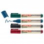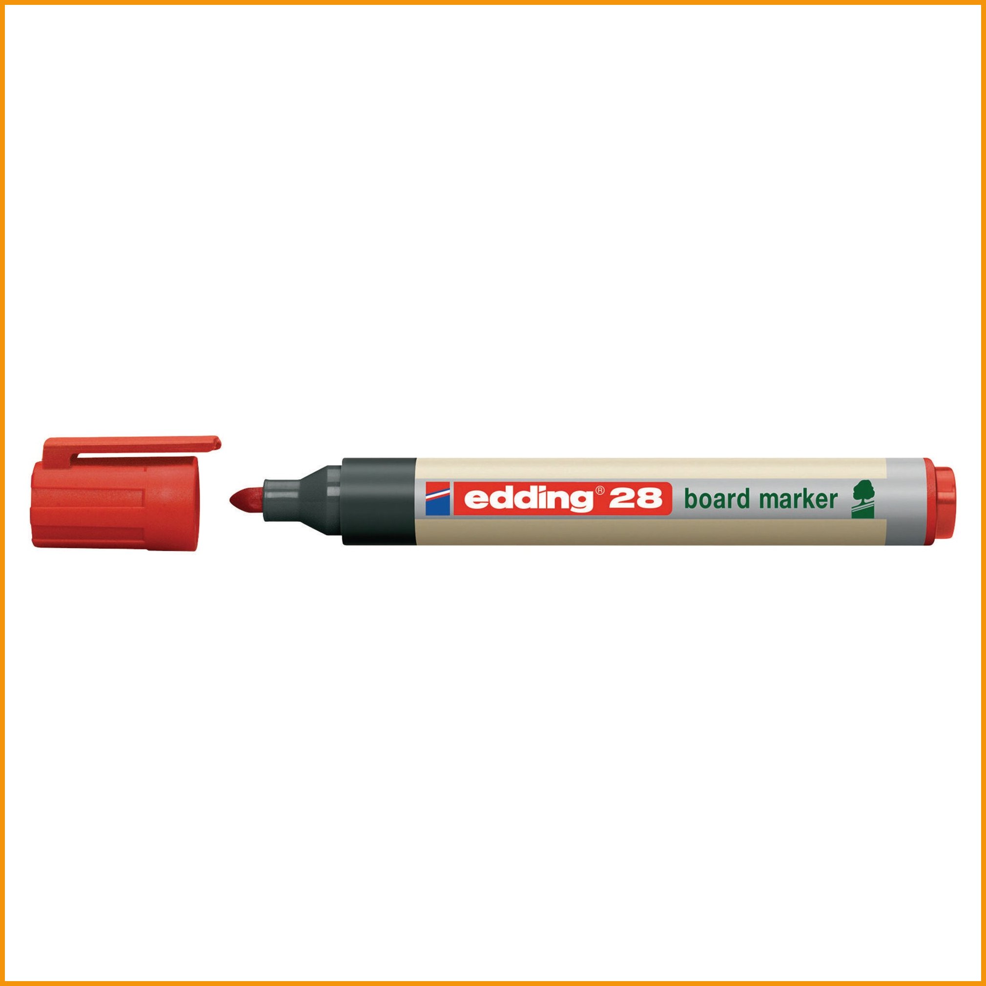 Edding ecoline 28 on ympäristöystävällinen valkotaulukynä, jonka muoviosista noin 90 % on valmistettu kierrätetyistä materiaaleista. kynän miedosti tuoksuva muste on helposti pyyhittävissä. kynän korkki voi olla auki useita päiviä musteen kuivumatta. pakkauksessa on neljä väriä: musta, sininen, punainen ja vihreä. pyöreä kärki, viivan leveys 1,5-3 mm. Taulutussien minimitilaus 1 paketti = 4 kpl. Tukkupakkauksessa 10 kpl. Lavalla 20 pakettia.Taulutussit toimitetaan 4 kappaleen erissä.
