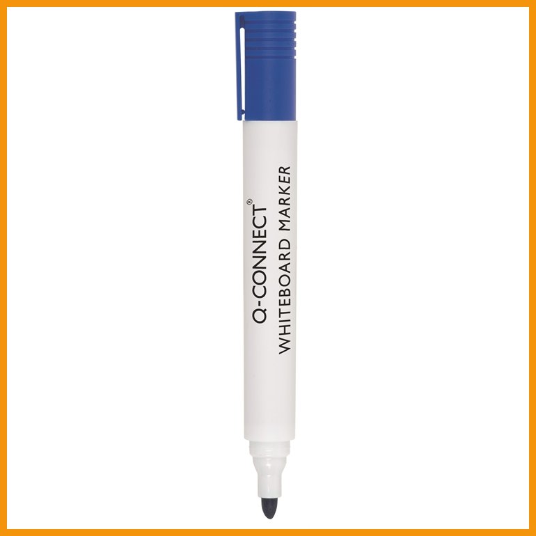 Q-Connectin valkotaulukynät on valmistettu 50-prosenttisesti GRS-sertifioidusta kierrätysmuovista. Miedosti tuoksuva muste on xyleenitöntä ja pyyhkiytyy valkotaululta helposti kuivalla kankaalla. Mustetta riittää 200 metrin kirjoittamiseen. Vaakatasossa säilytettävät kynät eivät kuivu, vaikka korkki unohtuisi auki 8 tunniksi.Musteen väri: sininen