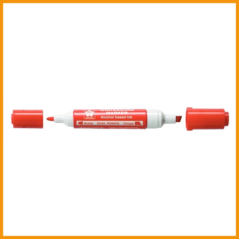 Sakura taulutussi punainen Twin Tip on kaksipäinen valkotaulukynä, jonka kahdella kärjellä piirrät eloisammin. Alkoholipohjainen ja miedosti tuoksuva muste kuivuu nopeasti ja on vaivaton pyyhkiä pois kuivalla liinalla tai taulupyyhkimellä.Musteen väri: punainen