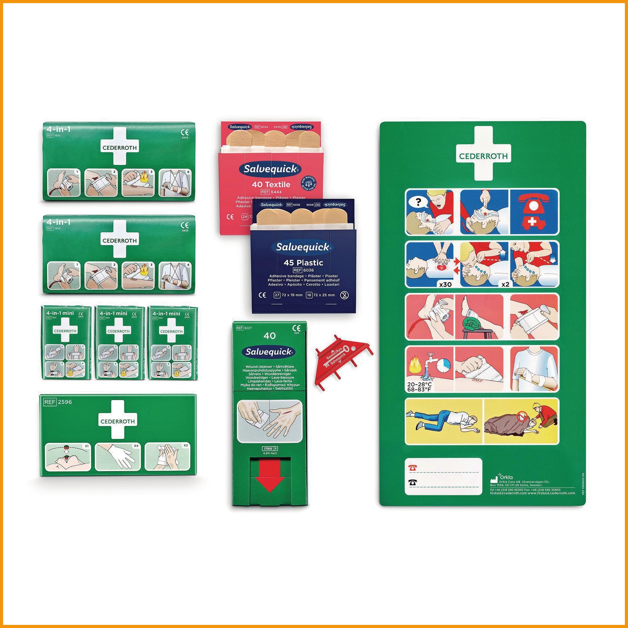 Ensiapukaapin täydennys Cederroth 264000 on monipuolinen ja helppokäyttöinen täydennyspaketti ensiapukaappeihin. Ensiaputäydennyksessä on kaikki tarvittavat ensiaputarvikkeet.