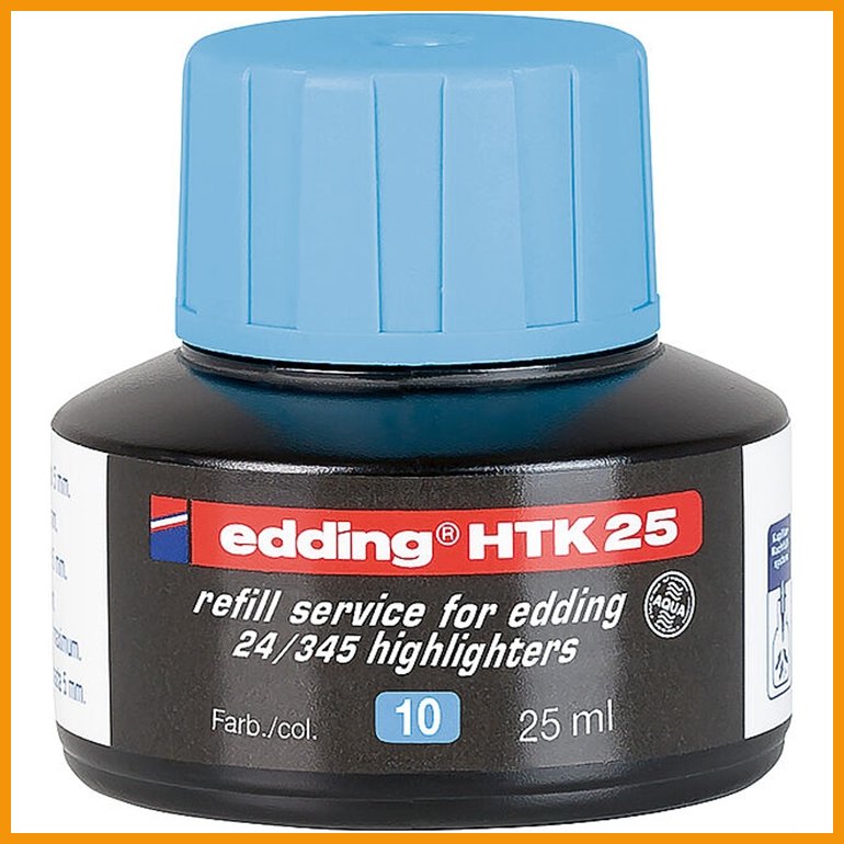 Edding BTK 25 on eddingin korostuskynille kehitetty täyttöväri, joka täyttää kynän mustesäiliön helposti ja suttaamatta. Muste nousee kapillaarisesti säiliöstä siihen pystysuoraan asetettuun kynään. Jätä kynä paikoilleen vähintään tunniksi tai mieluiten yön yli, niin se on jälleen valmis käytettäväksi.