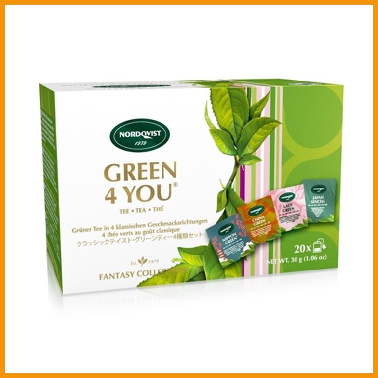 Nordqvistin Green 4 You on lajitelma vihreää teetä, jossa on kolme raikkaasti maustettua makua ja yksi maustamaton tee.*Nippon Green: vihreä Sencha-tee, mansikka-, sitruuna- ja vanilja-aromi.*China Green: vihreä Sencha-tee, mustaseljamarja- ja kvittenhedelmäaromi.*Lady Green: vihreä Sencha-tee, kirsikka- ja vanilja-aromi.*Japan Sencha: vihreä Sencha-tee.