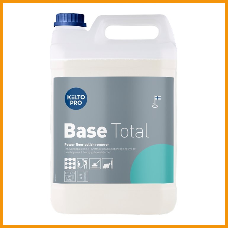 Kiilto Pro Base Total on matalavaahtoinen vahanpoistoaine kerrostuneen ja vaikeasti irtoavan vahan poistoon emästä kestäville lattioille. Vahvasti emäksinen ja erittäin tehokas aine on hajusteetonta, mutta sillä on mieto ominaistuoksu. Aine tulee huuhdella huolellisesti käytön jälkeen. Huom! Ei sovellu linoleumille.Pakkauskoko: 5 litraa