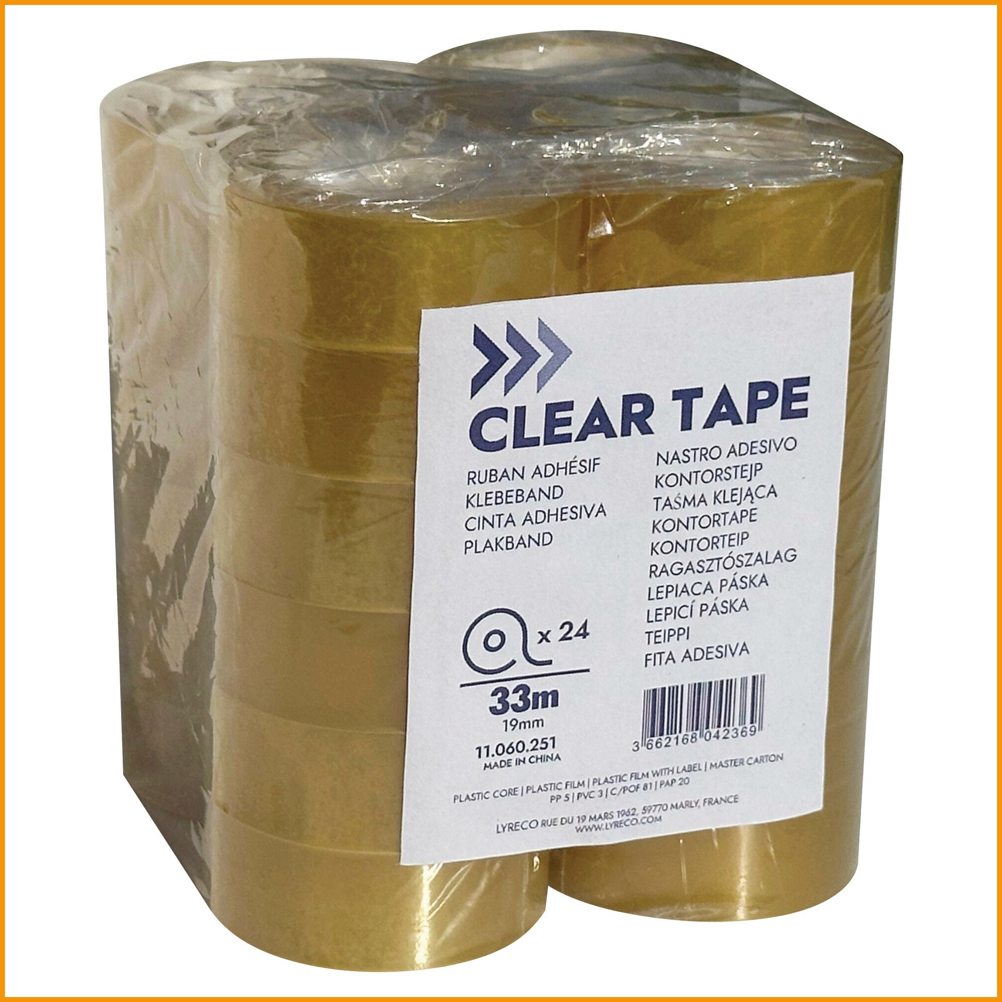 Teippi Lyreco mitat 19mm x 33m teippipakkauksessa 24 rullaa kirkas kellastumaton läpinäkyvä teppi irtoaa rullasta tasaisesti ja on helppo katkaista.