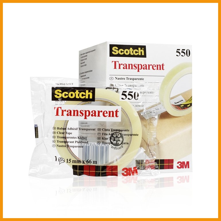 Scotch 550 on erittäin vahva ja kestävä teippi, joka kiinnittää pitävästi. Kirkas ja kiiltäväpintainen teippi ei kellastu eikä kuivu ajan myötä. Se soveltuu erinomaisesti esim. Pienien pakettien ja kirjekuorien sulkemiseen, julisteiden kiinnittämiseen tai pieneen korjailuun.Mitat: 19 mm x 66 m