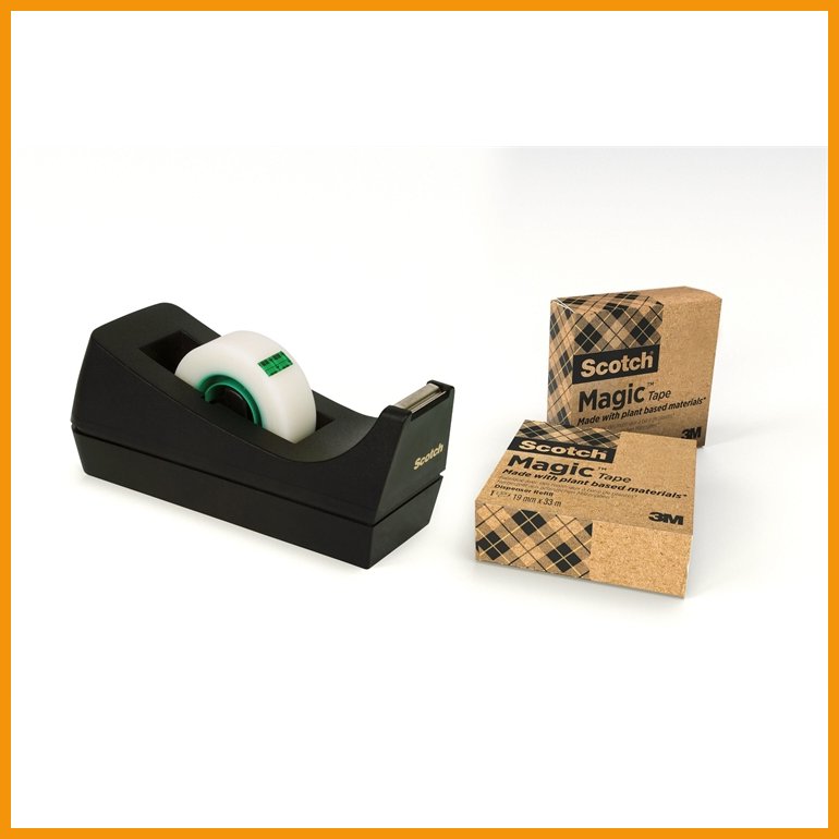 Scotch C38 on puolestaan hiekalla täytetty, kokonaan kierrätysmuovista valmistettu katkaisulaite, joka pysyy painonsa ja pohjan liukuesteiden ansiosta tukevasti pöydällä. Metalliterä katkaisee teipin vaivatta ja varmasti. Katkaisijaan sopivat kaikki sisämitaltaan 2,54 cm teippirullat.