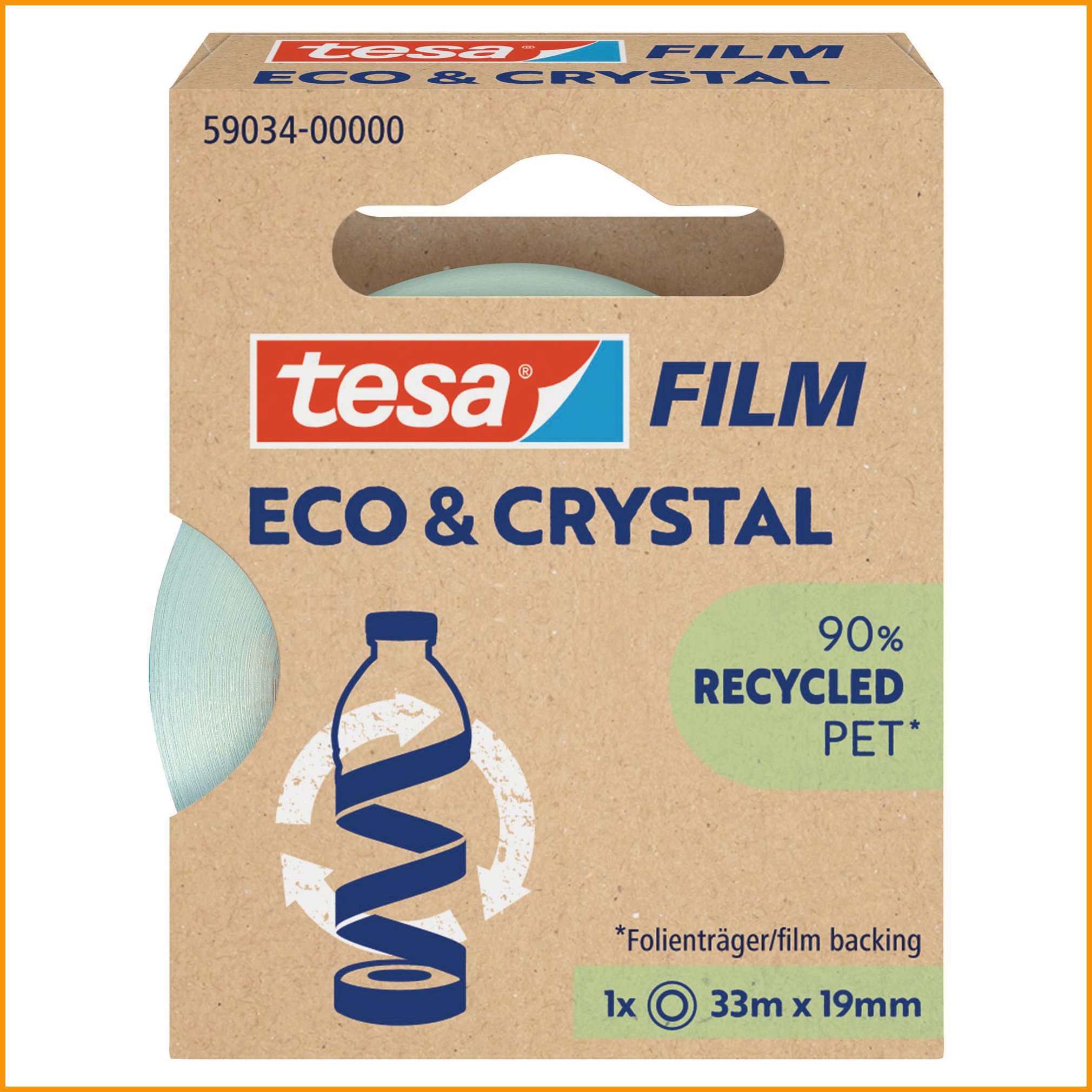 Tesafilm® eco & crystal 19 mm x 33 m. - vahva tarttuvuus. Valmistettu 90 % jälkikuluttajakäytöstä peräisin olevien pet- muovipullojen. Voidaan hävittää paperin kanssa vaarantamatta kierrätysprosessia (ingede-menetelmän 12 mukaisesti).Teippi Tesafilm eco premium 33 m x 19 mm, kirkas on hyvä toimistotuote, jonka verkkokaupan tilauksen toimitus kestää 1-2 päivää. Huomaa, että hinnaltaan yli 140 € verkkokauppatilaus toimitetaan aina ilmaiseksi! Meiltä voit tilata laskulla ja ilman rekisteröitymistä.