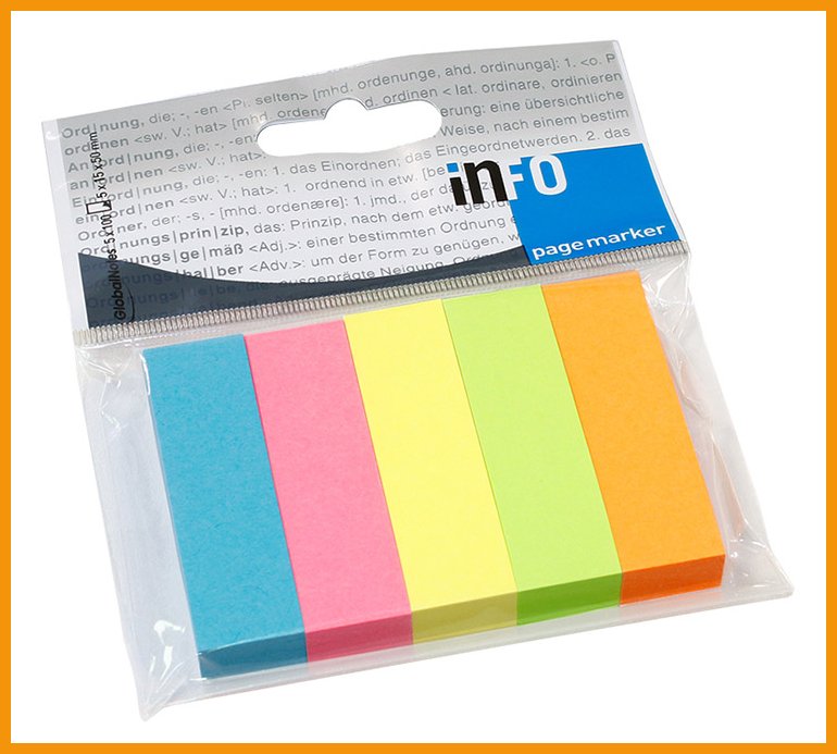 Info-teippimerkkien avulla merkitset ja värikoodaat kirjoista ja dokumenteista tärkeät sivut ja tiedot. Lujasti kiinnittyvän lapun päälle voi kirjoittaa. Laput voi tarvittaessa irrottaa ja kiinnittää uudelleen jälkiä jättämättä.Laput on valmistettu FSC-sertifioidusta paperista ja liima on vesipohjaista.
