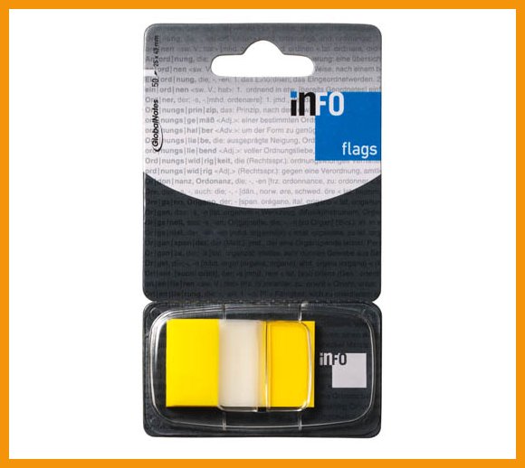 Info-teippimerkkien avulla merkitset ja värikoodaat kirjoista ja dokumenteista tärkeät sivut ja tiedot. Lujasti kiinnittyvän lapun päälle voi kirjoittaa. Puoliksi kirkkaat ja puoliksi värilliset teippimerkit voi tarvittaessa irrottaa ja kiinnittää uudelleen jälkiä jättämättä.Tuote on valmistettu PET-muovista ja liuotinvapaa liima on vesipohjaista.