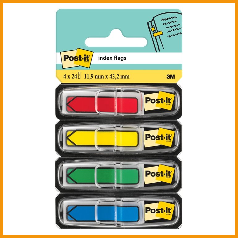 Teippimerkki Post-it Index nuoli 11,9 x 43,2mm värilaj /4x24 hinta 6,47€