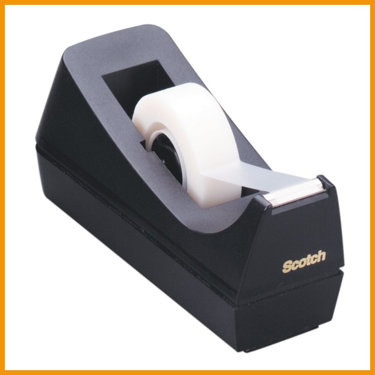 Scotch C38 on hiekalla täytetty ja kokonaan kierrätysmuovista valmistettu teippiteline, joka pysyy painonsa ja pohjan liukuesteiden ansiosta tukevasti pöydällä. Metalliterä katkaisee teipin vaivatta ja varmasti vaikka yhdellä kädellä käytettäessä. Telineeseen sopivat kaikki sisämitaltaan 2,54 cm teippirullat.Väri: musta.