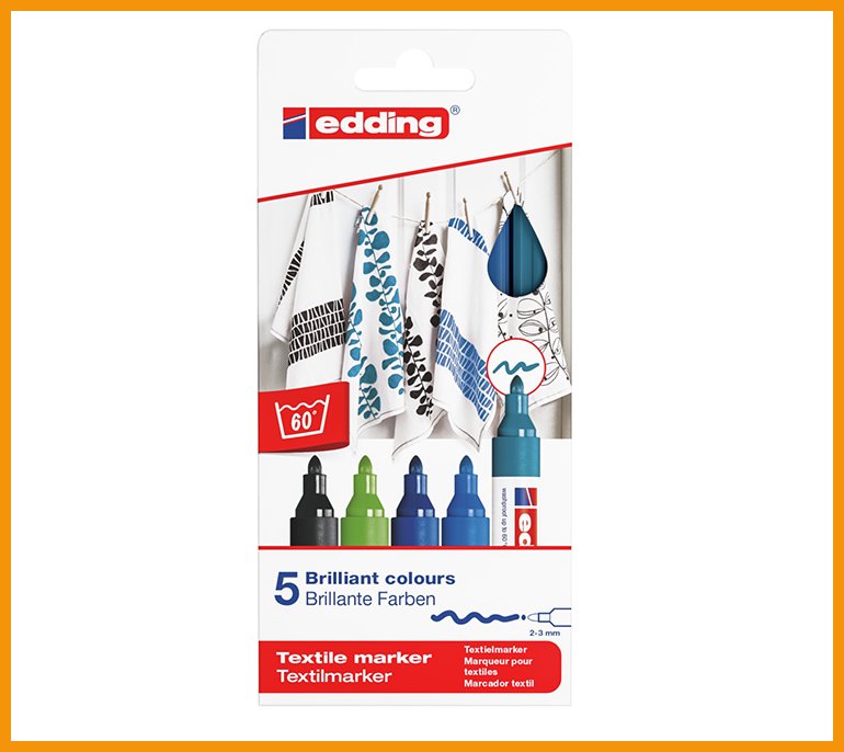 Tekstiilikynä Edding 4500 värilajitelma 5 kpl