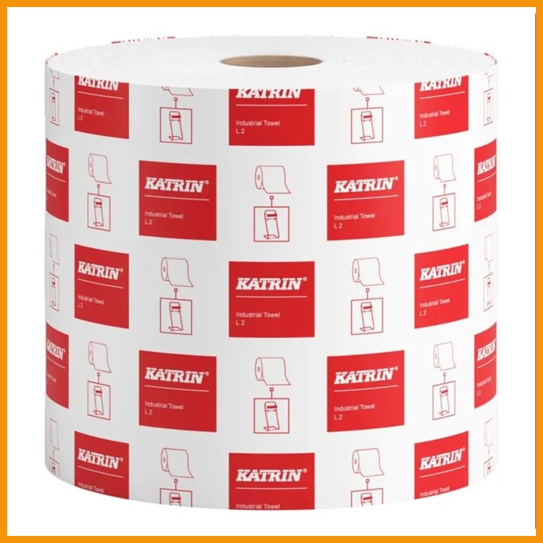 Katrin Teollisuuspyyhe L on laadukas ja kestävä paperirulla teollisuuden kuivaus- ja pyyhintätarpeisiin. Paperi soveltuu erityisesti öljyn, rasvan ja pesuaineiden poistamiseen erilaisissa teollisissa ympäristöissä.2-kerroksinen valkoinen paperi tarjoaa hyvän imukyvyn ja kestävyyden. Suuren kapasiteetin rulla sisältää 1000 arkkia ja soveltuu erityisen hyvin viskoosien nesteiden, kuten öljyn ja rasvan, pyyhintään. Malja-haarukkasymboli osoittaa, että tuote on hyväksytty lyhytaikaiseen elintarvikekosketukseen, kuten pyyhintään. Rullaa voidaan käyttää seinä- tai lattiamallisen annostelijan kanssa tai ripustaa hylsystä.