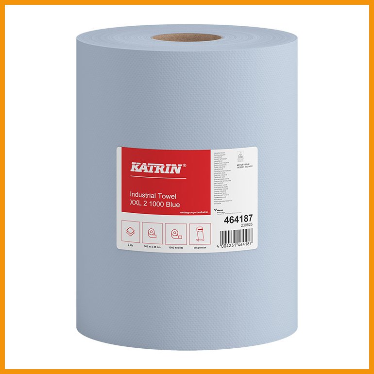 Katrin Teollisuuspyyhe XXL on laadukas, vahva ja laminoitu paperi teollisuuden tarpeisiin. Erittäin imukykyinen ja suuriarkkinen paperi soveltuu lyhytaikaiseen kosketukseen elintarvikkeen kanssa, kuten pyyhintään.Tuottella on EU Ecolabel -ympäristösertifikaatti.