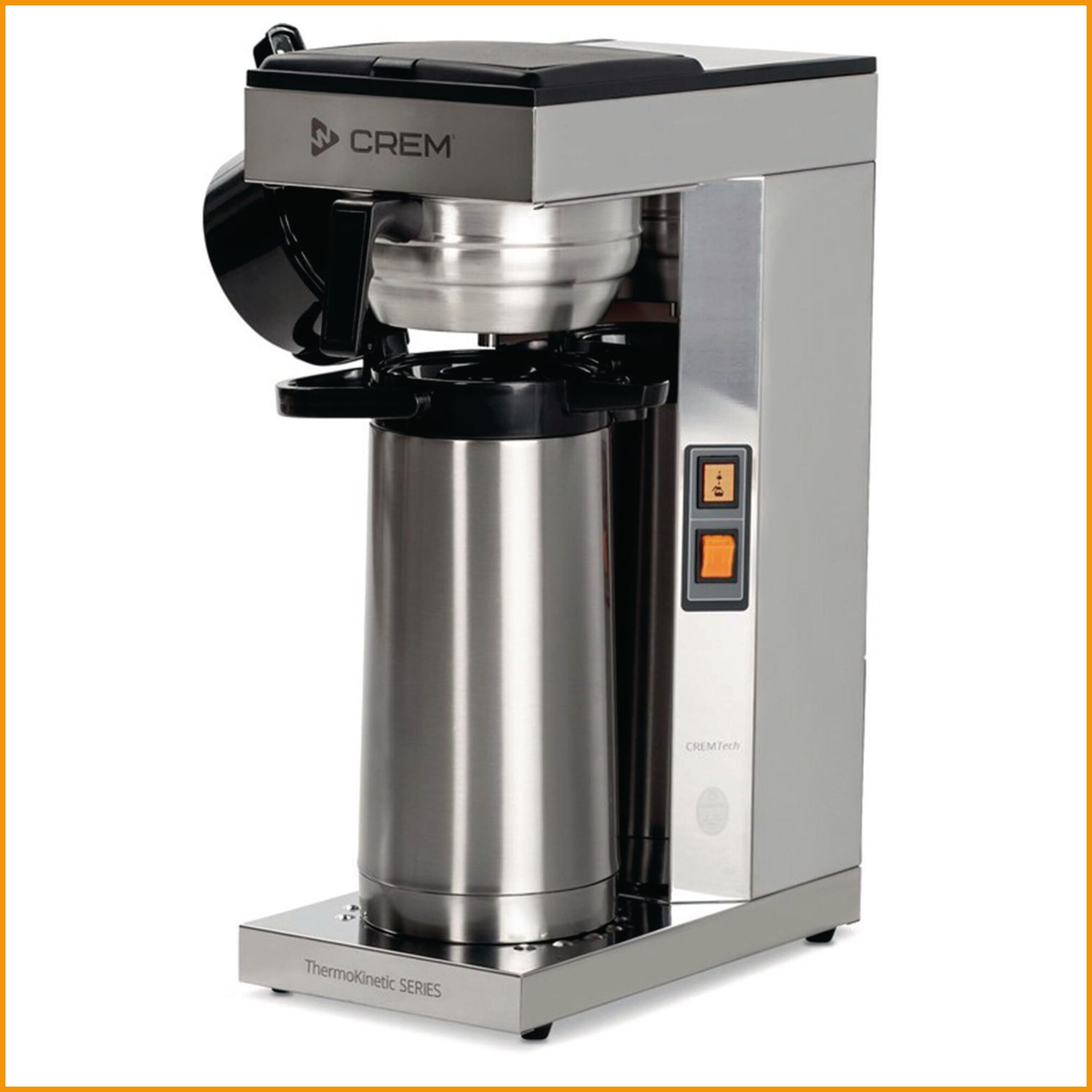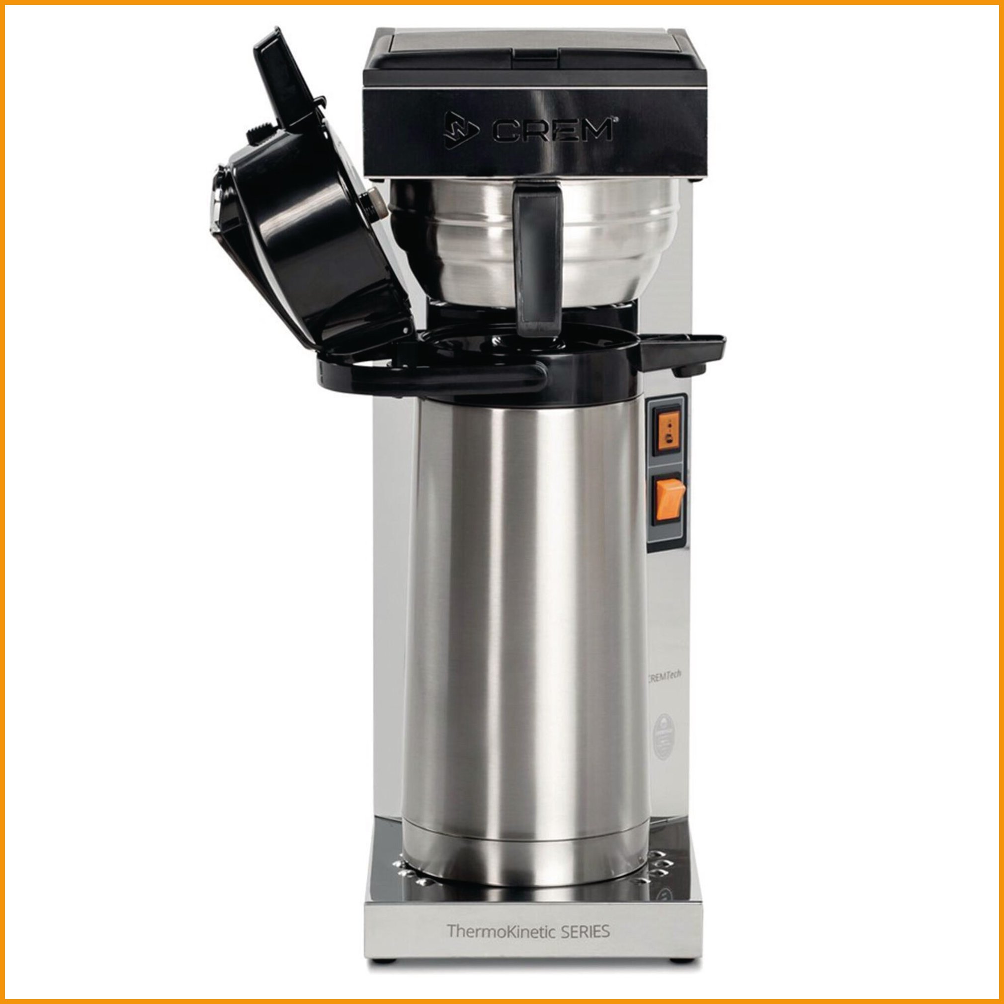 Crem thermokinetic thermos m -kahvinkeittimellä keität kahvit kätevästi suoraan 2,2 litran pumpputermokseen, joka on valmistettu ruostumattomasta teräksestä. termoksen sisällä kahvi pysyy tuntien ajan kuumana ja aromikkaana. termoskeitin on oiva kumppani pitkiin palaveripäiviin, kun kahvia kuluu pitkin päivää. Termoskeittimen mitat ovat: 205 x 410x 557 mm, paino 7,9 kg sähköliitäntä: 230v / 2200w kapasiteetti: 15 kuppia/suodatuskerta, 15 litraa tunnissa keittoaika: 7 minuuttia suodatinpussi: 110 mm.Termoskeitin Thermokinetic thermos m 2,2l on korkeatasoinen kahviotuote, jota toimitetaan kun sitä saapuu varastoon (1-2 viikkoa). Tiedäthän, että toimitus on ilmainen yli 140 € hintaisille verkkokauppa ostoksille! Meiltä voit tilata laskulla ja ilman rekisteröitymistä.