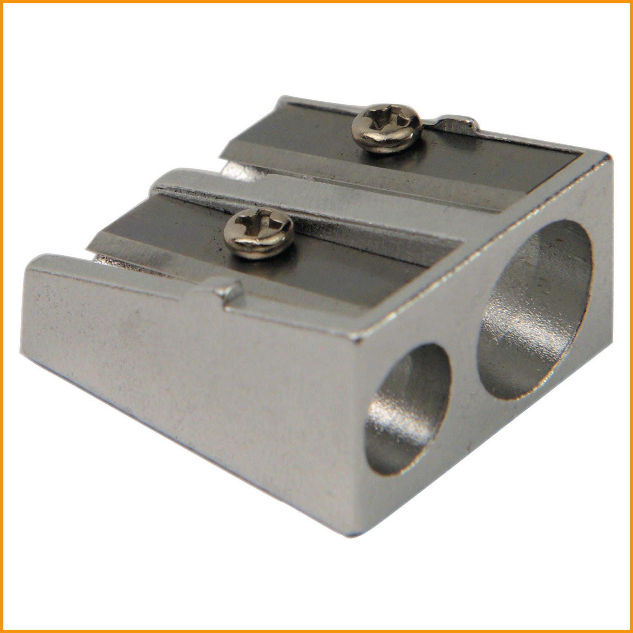 Perinteinen alumiininen teroitin ilman säiliötä. Teroittimien minimitilaus 1 paketti = kpl . Tukkupakkauksessa 20 pakettia.Teroitin 2-reikäinen metalli on hyvälaatuinen toimistotuote, jonka toimituksen kesto on verkkokaupasta tilattuna 1-2 päivää.