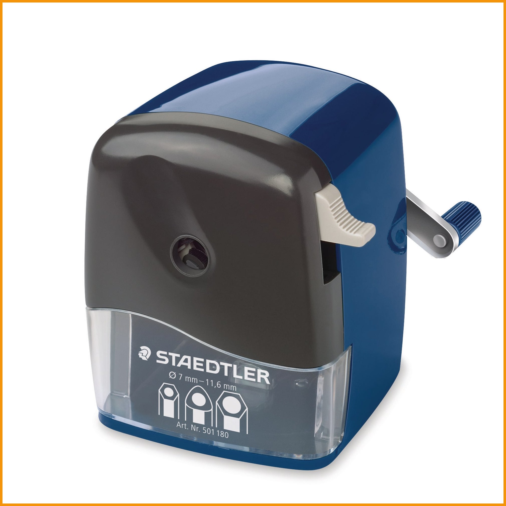 Staedtler 501 -kynänteroitin sopii niin pyöreille, kolmikulmaisille kuin kuusikulmaisillekin kynille. kynien enimmäishalkaisija on 12 mm, ja teroitusjälkeä voi säädellä:- Pitkä ja terävä kärki.