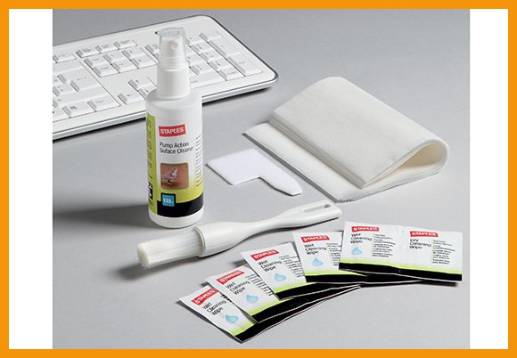 Staplesin puhdistuspakkauksessa on kaikki tarvittava tietokoneen kevätsiivoukseen.