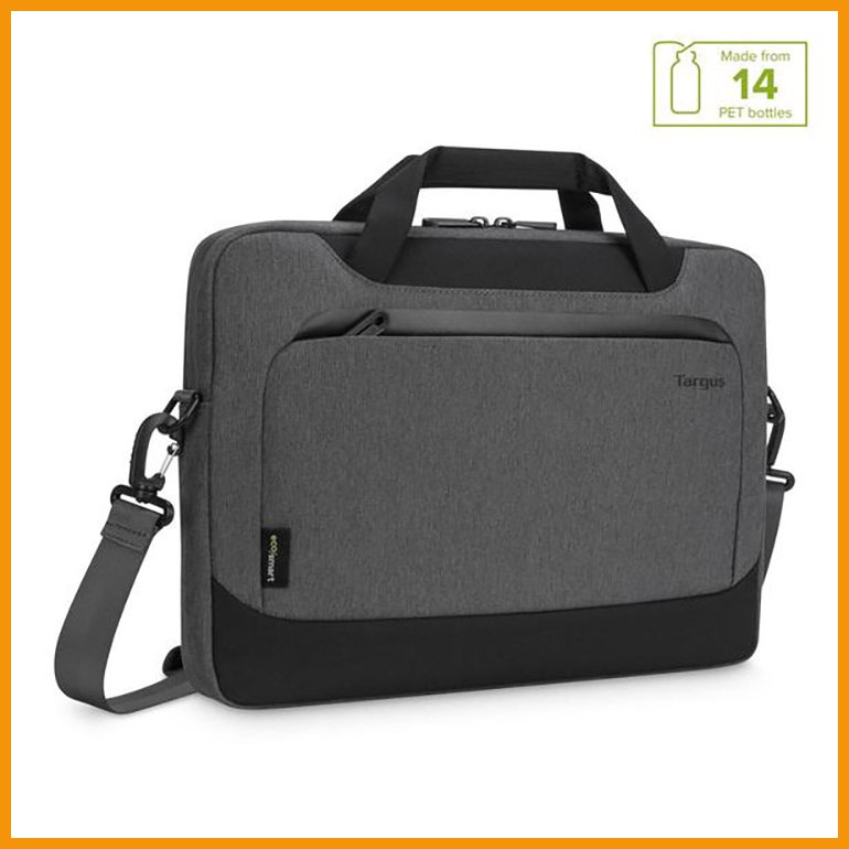 Targus Cypress Slimcase with EcoSmart on näppärä tietokonelaukku korkeintaan 15,6 läppärille. Päältä avautuvan laukun päätaskussa on lokero kannettavalle tietokoneelle ja tilaa myös muille pientarvikkeille. Laukussa on säädettävä olkahihna, kantokahva ja remmi matkalaukkuun kiinnittämiseen.Tuote on valmistettu kierrätetyistä muovipulloista saadusta PET-polyesterikuidusta ja kangas värjätty luonnonmukaisilla väriaineilla.