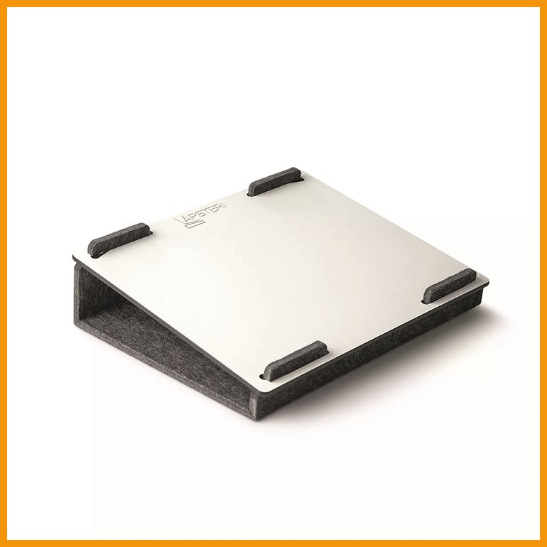 Läpsteri-sylitason avulla saat vaihtelua koti- ja toimistotöihin perinteisellä työpöydän äärellä työskentelyssä. Sylitaso tekee esim. sohvalla tai nojatuolissa työskentelystä ergonomisempaa. Tuote on hyvin kevyt ja helppo siirtää. Sylitason alustan huopamainen materiaali on valmistettu kierrätetyistä pullonkorkeista. Kansi on massiivilaminaattia. Kannen alla on tyhjä tila esim. laturin tai kannettavan tietokoneen säilytykseen. Valmistettu kotimassa kotimaisista raaka-aineista. Mitat: etureunan korkeus 35 mm, takareunan korkeus 85 mm, leveys 360 mm, syvyys 295 mm (lukitusten välinen syvyys 258 mm), paino 1,3 kg. Painoraja 7 kg. Takuu 2 vuotta. Muut hakusanat: sylitaso, kannettavan teline, sylityyny, läppärityyny, läppäritaso, konseptiteline, etätyö.