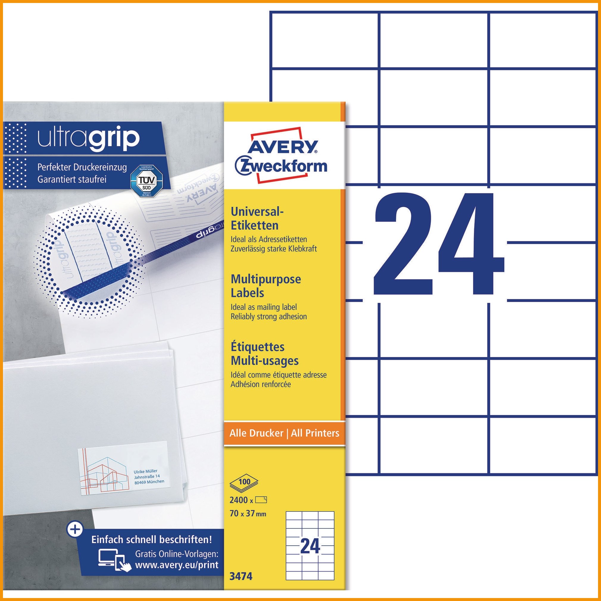 Tulostustarra Avery 3474 70 x 37mm 24-osainen 2400kpl tuotetiedot