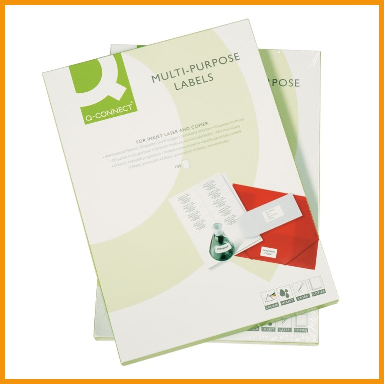 Q-CONNECTin monikäyttötarrat soveltuvat niin kopiointiin kuin sekä laser- että mustesuihkutulostukseenkin. Tarroissa on suorat kulmat. Voit ladata valmiin tulostuspohjan osoitteesta www.q-connect.com/q-designer.Tuote on valmistettu FSC-sertifioidusta kuidusta.